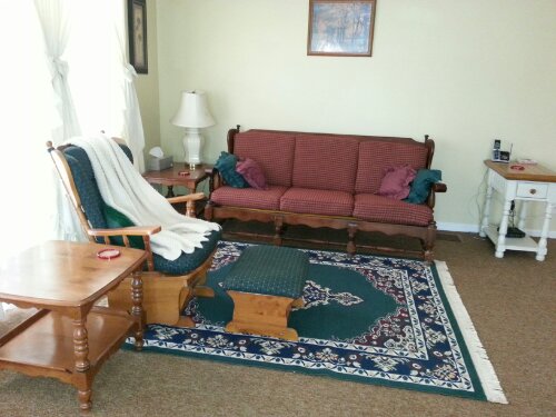 I also thought about using the dyed fabric to make Miffy a bed for that couch; it’ll coordinate with the room, and keep his hair off the cushion covers. Dunno.