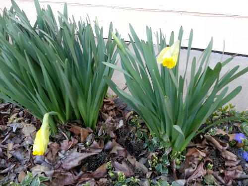 I don’t know whether these ‘dils are daffy or not, but they are certainly lazy! Lazydils finally starting to bloom.