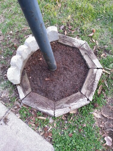 …but something! I pulled a bucketful of fucking dandelions, and was weeding around the lamp post when I decided it needed flowers. I planted dwarf blue bachelor’s buttons, and dwarf red plains coreopsis, since I somehow ended up with a bunch of those. Was going to throw in a few pompon zinnia, but decided there wasn’t enough sun for them. Maybe nothing will grow, but maybe something will (something that’s not a fucking dandelion). Anyway, at least it’s not weeds anymore!