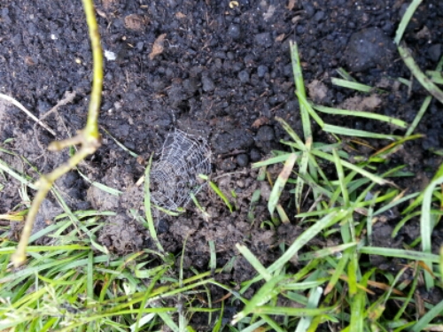 Cute ‘pider web by my as-yet-un-trellised (it’s a word) pipevine.