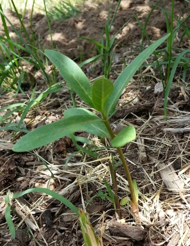 I was sad to leave the milkweed behind at 544, but it’ll usually die if its taproots are broken, and we’d have to do that to dig it up. 544 milkweed still made it, though; this one popped up at the base of the Grey Stick that had been closest to the milkweed bed! I was so happy to see it; I’m not going to try to move it for the same reason I didn’t try to bring my milkweed from 544 in the first place.