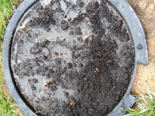 I thought about digging up the rest of that goddamned crap-grass so I could plant perennials, but I was just too tired, so instead, I planted the rosemallow in its own, private mini-swamp.