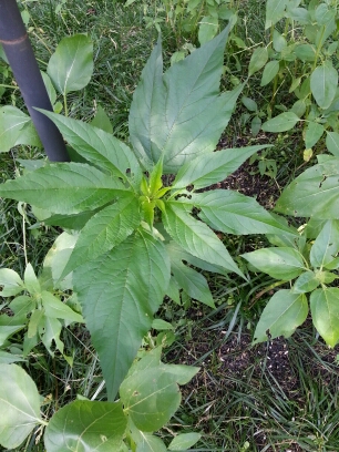 Giant ragweed, attempting to hide amongst the sunflowers. I’d already pulled up two or three, but missed this one until it was pretty big. Fuck ragweed.