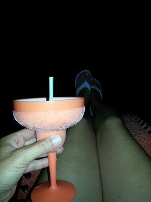 Freshly showered, in my lounge with tunes via WiFi and Bluetooth, a Chi Chi’s Skinny Margarita and new Riders sandals that probably won’t be white for long, paid for with Amazon points. Waiting for the rain that kept us from doing concrete, but needed by my flowers, so it’s okay. It’s all good.
