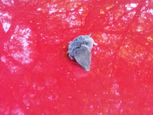 Skanny’s latest gift. Ew. Poor Skanny must be thinking that we’re the stupidest kittens alive to not have learned how to hunt our own moles after all the times he’s left dead ones on our cars for us.