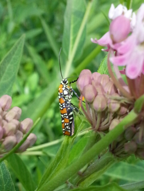 Ailanthus Webworm moth on milkweed.