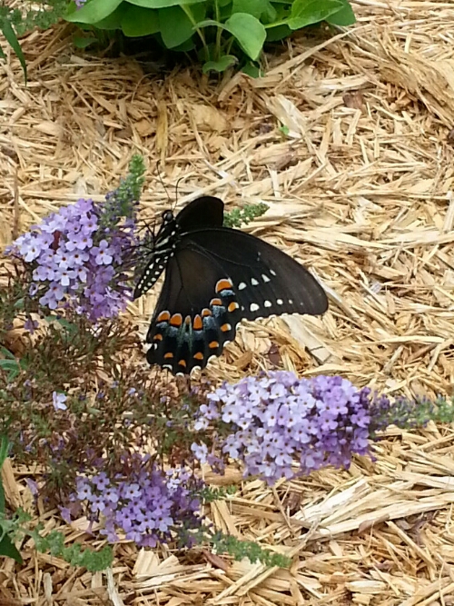 I had two flutter-guys yesterday; a male Spicebush Swallowtail and a probably female Monarch.