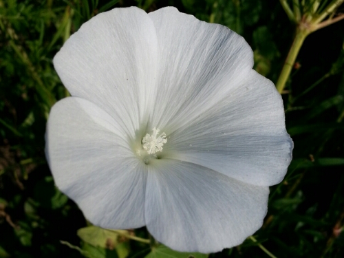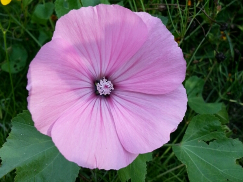 Two of the mallow that I didn’t pull even if I did waver for a while, trying to decide whether they were weeds or something I’d planted. They’re lovely; I wish I’d planted more, but I didn’t know what the Japanese beetle situation might be like this year, and those bastards just love mallows!