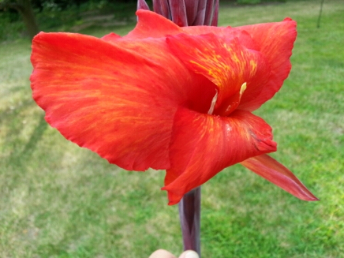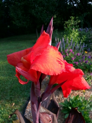 Here’s the canna on Wednesday morning. I took the picture early in the morning because the light was good for a glorious golden-red bloom. Holy crap these things are beautiful!!