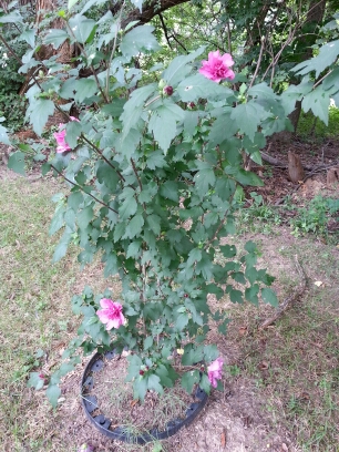 Blooms on the Cliffie bush. Not great blooms, and not a lot of them, but considering Tree Dude STILL hasn’t showed up (couple of rain days last week, so I’m not quite ready to beat him with a flip-flop) and the poor thing doesn’t get any light, I’m impressed.