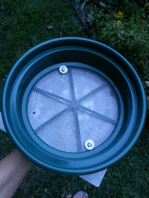 One of my few accomplishments this weekend. I got a dirt screen on Amazon, then snipped just enough of the stainless steel wire bottom to accommodate two SS bolts and made it into a bird feeder. I love the heavy base on the tall feeder pole, but it needs something with good drainage. Hopefully, this will do the trick.