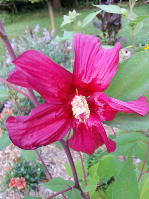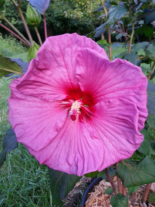 First bloom on my wild hardy hibiscus. I wasn’t expecting deep pink, and this bloom is a bit damaged, but I’ll take it!