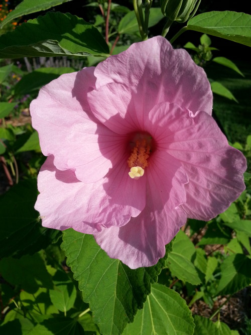 My wild-type hardy hibiscus isn’t just bright pink; it’s light pink,  too!