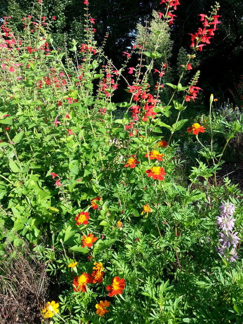 Scarlet sage, French marigold and purple Monarda. I’m definitely growing these next year!