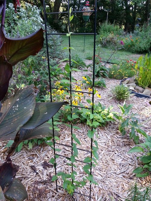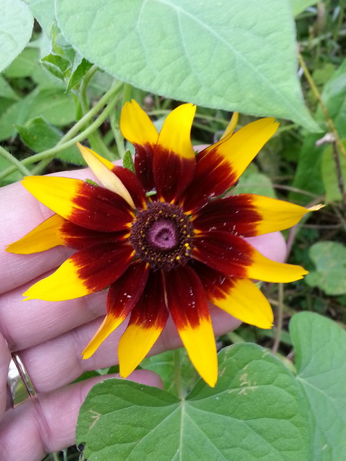 Today. I don’t know what this is; it was in the “mixed wildflowers” (AKA floor sweepings) seeds. It’s Rudbeckia of some sort, I think.