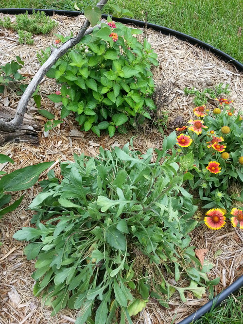 This one Gaillardia arrived kind of droopy and I wasn’t sure it would live, but it eventually grew huge. I thought it would never bloom, but there is one bud on it, so I guess it just took its time getting established. The lantana (this one and the other) did okay, but I really wasn’t impressed. Too bad they won’t come back next year.
