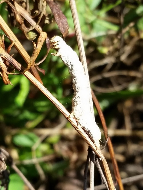 I pulled dead stuff out of the Honeysuckle Horseshoe, too, and found a “petrified” caterpillar. I have no idea what happened.