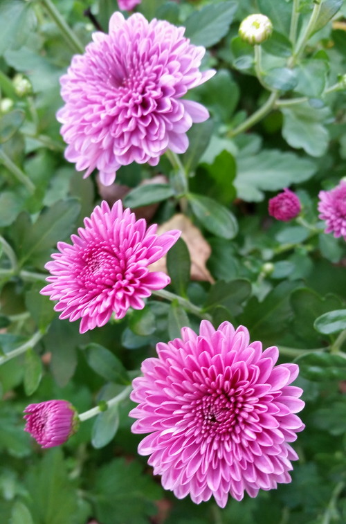 The old lady’s chrysanthemum. I dug them out of the patio flowerbed, but then felt bad for them and just stuck them in the ground in the border. Onje slept in them a lot, and I didn’t think they’d bloom after all I did to them, but they’re tough…and kind of pretty, as chrysanthemums go.