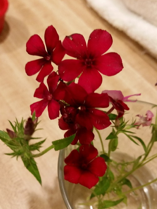 I found a few of P’s phlox flowers that had escaped the frost, so I picked them in hopes of not having to sit and feed Sarah.