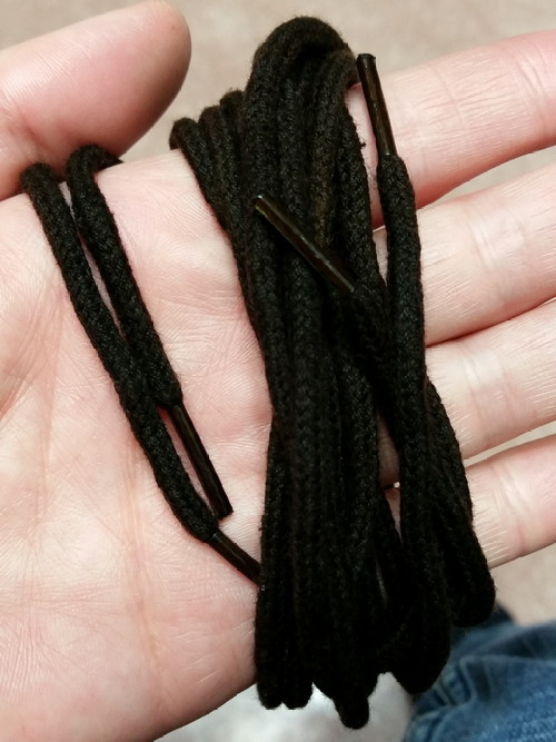 They’re still wet, but my laces came out well. After the dye on my boots dried, and I soaked them with neatsfoot oil, the laces were too light. I think once they’re dry, they’ll be perfect.