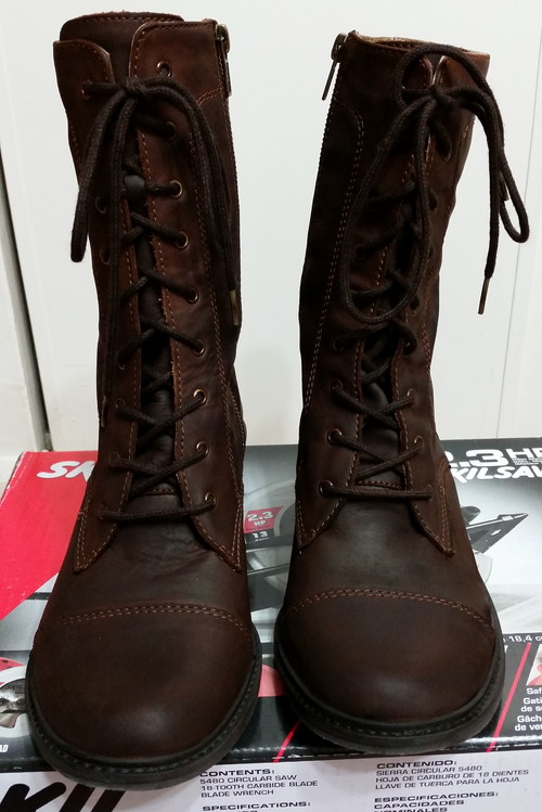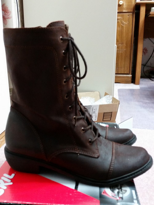 I was dead tired last night, but stayed up just a few more minutes to put the laces back in the boots I’d dyed. I’m happy with the colour, and I was pleased with the performance of the oil dye. The deglazer made enough of a difference that it was worth buying. “Ist gut.” 🙂