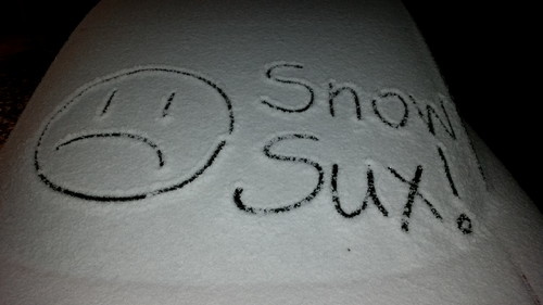 First real snow. I’m about half-finished Ol’ Kitteh’s outdoor house, but no pictures yet. I worked outside and it was fucking cold. Anyway…