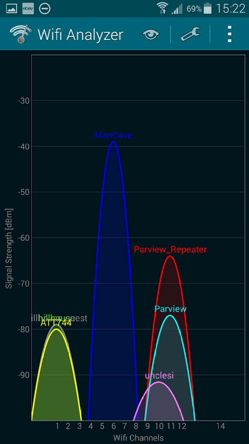 EDIT DAYS LATER: I’ve looked at that screencap many times, and it only just occurred to me that I should’ve immediately realised it wasn’t getting a connection to the main router because it’s broadcasting on channel 6, which means it’s trying to be a router, not a repeater, which would be broadcasting–repeating–the signal on the channel the original uses, which is channel 11. Duh.