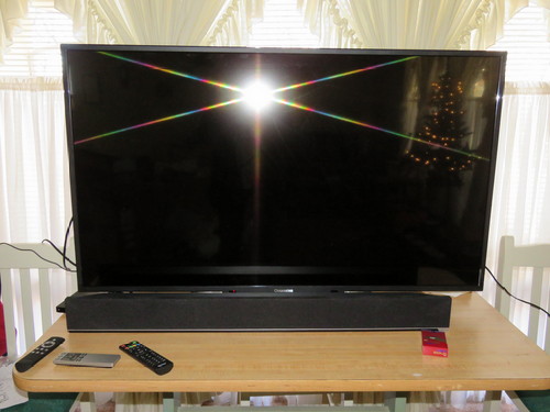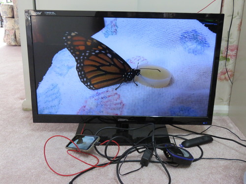 My TV, mirroring my phone’s display, courtesy of an MHL cable.