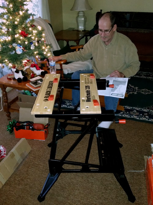 I got two of the vintage books that I wanted, and…a Workmate! The instructions were something else–it would’ve been easier if they’d put the pictures with the text, and made them large enough to not require the assistance of a scanning electron microscope–but we managed. I’m currently thinking of a little project I can do today so I can use it.