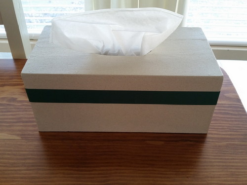 I also got the ribbon to trim the tissue box cover, so it matches my planter and the curtains. It’s okay, especially for being constructed of leftovers except for $3 worth of ribbon.