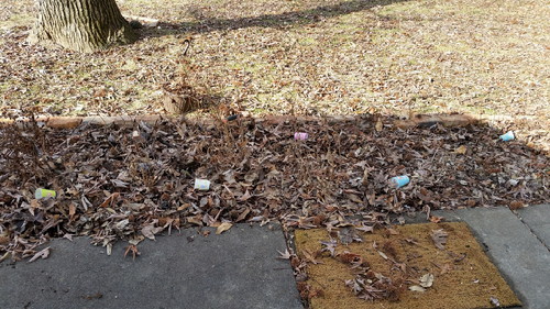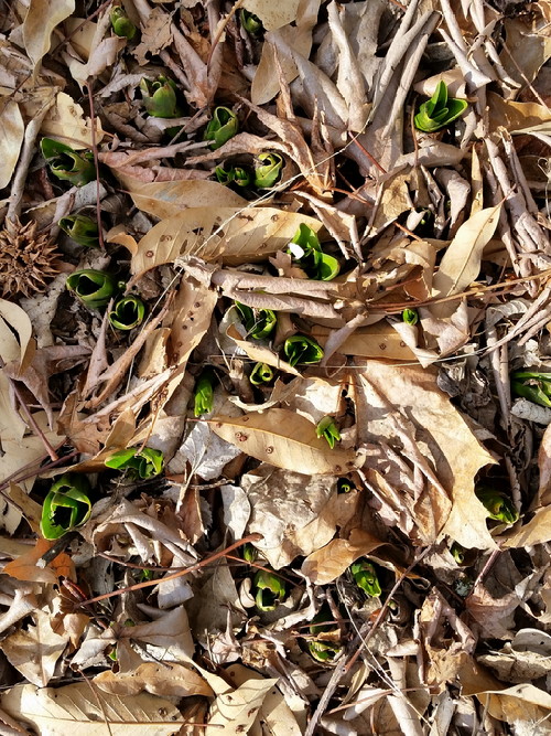 Peonies are well-mulched with leaves, and busy beneath. I don’t care about peonies, either, but may move them someday. They do get enough sun to bloom, so meh.