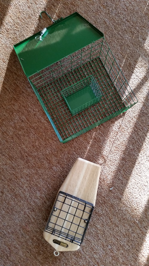 Each one holds two suet cakes. One has a tail prop that makes it difficult for any bird that can’t cling to a vertical surface and balance with its tail (i.e. non-woodpecker types), and the other has a cage outside that allows only small birds to enter (e.g. nuthatch, small woodpecker, Carolina wren, chickadee). I doubt any feeder is completely starling and grackle proof, but I’m damned well not going to make it easy for the greedy bastards! I’ll still fill one of the suet feeders on the trees, but the other is going to be modified before I put anything in it because it’s just a waste; it all goes to the starlings. A curse upon those who imported the hateful, unwelcome starling!