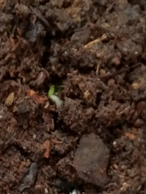 The other one hasn’t been slacking off, though–it’s been hard at work in the dirt, and it just about ready to poke its little head out and meet the world.