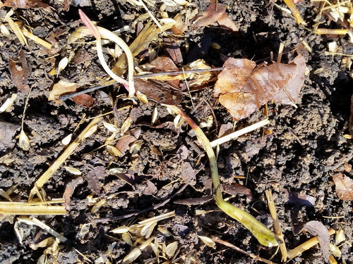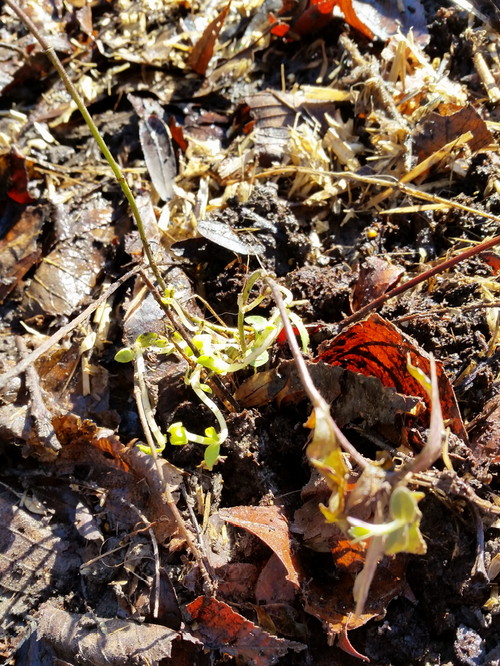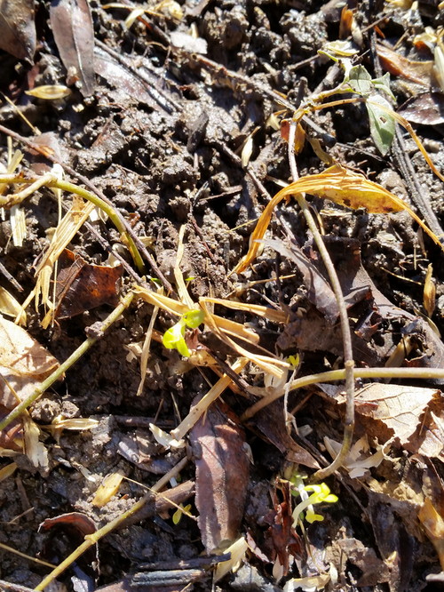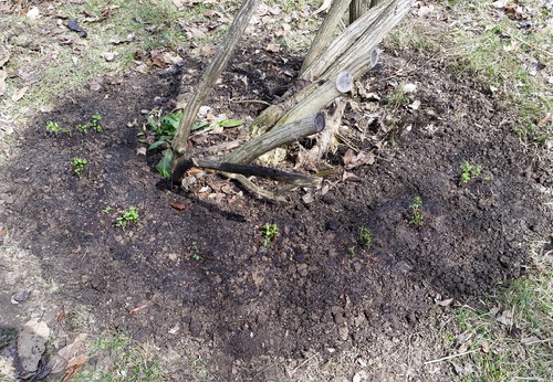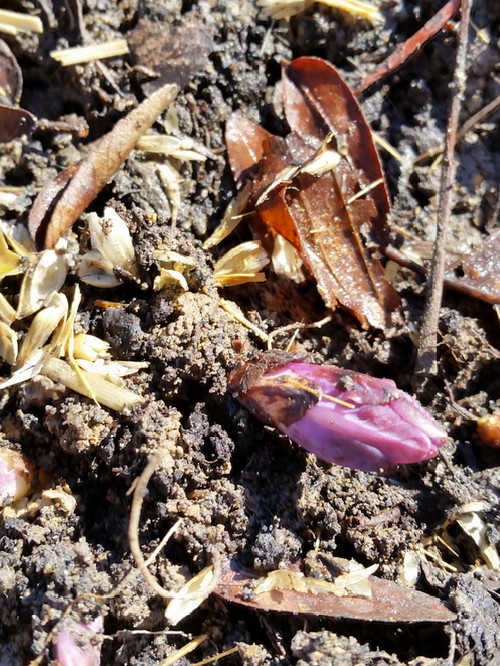 This one was out of the ground, but I don’t know whether the ground heaved or I raked it out. I put it back; hopefully it’ll forgive me.