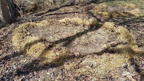 I forked/raked back the straw and leaves to see whether the plants I’d put out had survived the cold. At least most of the wild phlox did.