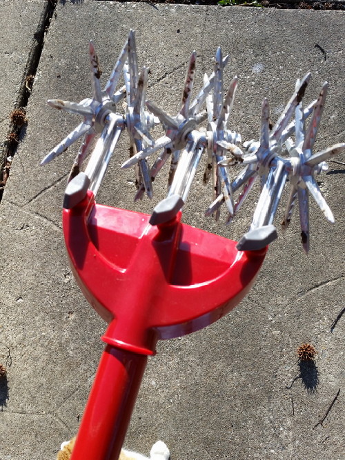 I went to Buchheit at lunch for bone meal for the lavender. I got that, plus blood meal, a soil scoop (finally!) and…a Garden Weasel, which will henceforth and forever be know as a Mindy-Weedel because…because Dad. Anyway, it’ll be much too cold to plant anything this weekend, but not too cold to prepare the dirt. At least I hope not.