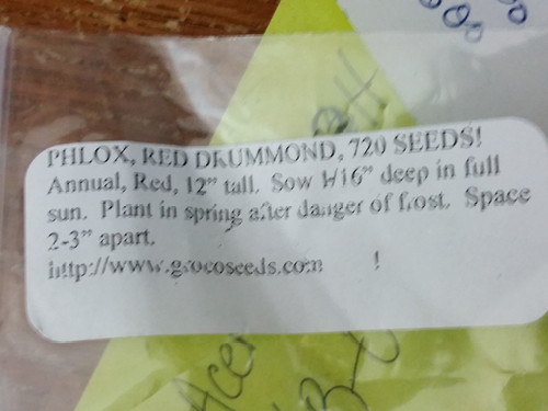 It rained off and on a little today, but was clear at 4, so I rushed home to start laundry and get something planted in the little corner of the Bee Happy bed that I didn’t have time for yesterday. It was close; it started to rain about 10 minutes after I’d planted the red phlox and put away my tools. No picture because it looks like…mulch. This is the phlox I planted; just annual.