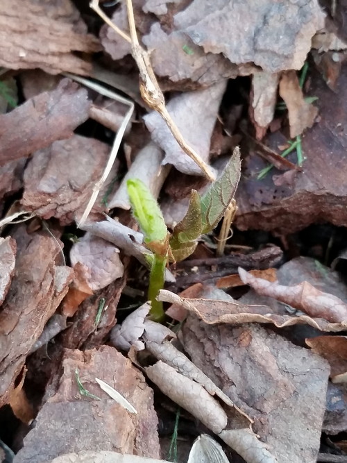 Astilbe isn’t dead after all, and heuchera is going to bloom (planted too late last year to see it).