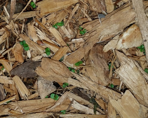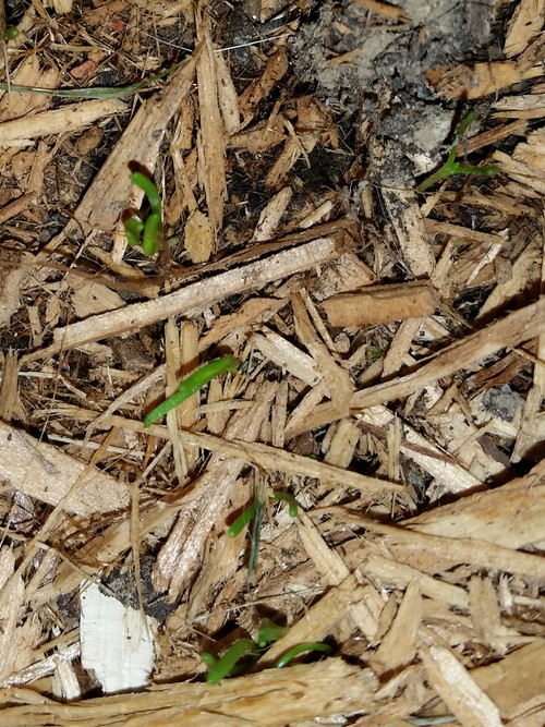 P.S. The little seedlings down there are jewelweed; I finally remembered to look, and they’ve got their first set of true leaves.