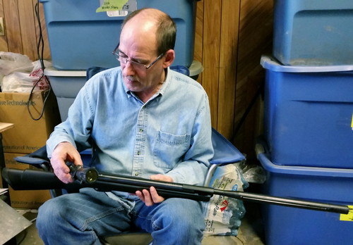 Attaching the scope. Yes, this thing has a scope. It’s also silenced; still a little loud, but not bad. It’s cool as hell, and I don’t think we’ll need to shoot too many of the miserable bastards before they’ll move along.