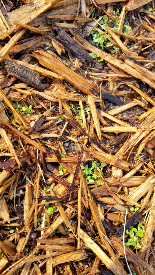 These are in the swamp bed, and if they’re lobelia cardinalis, then I ended up with all the seeds in one damned spot because there’s a big clump of these, then…nothing.