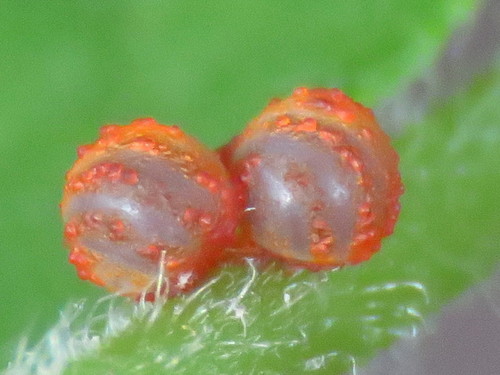 She was very definitely a girl, and she left at least four (didn’t look too hard) little presents on the snakeroot. She checked out every plant in the Bistro, even the pipevine, but she deposited eggs only on the snakeroot. She looked very worn, but she was very welcome!