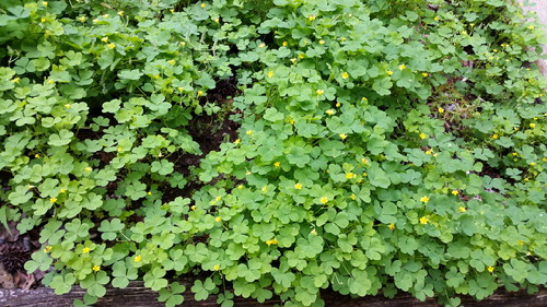 This oxalis is growing in the soon-to-be-gone flowerbed on the patio. I know it’s technically a weed, but I like it, it’s native, and I just read today that it’s a host plant for a butterfly whose name escapes me ATM.