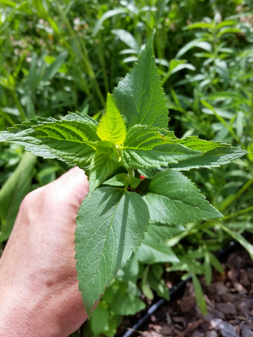 Houston, we have…anise hyssop! I thought it was bee balm, so I broke a leaf and sniffed. Licorice–wonderful!!