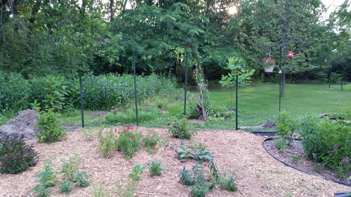 I didn’t do anything big, just planted the rest of the dwarf cosmos (the ones with the abysmal germination rate) here and there, and pulled out a few weeds. I can’t find any of my bebe Monarchs, but I’ve still got somewhere between 13 and 16 pipevine ‘pillars. Hope my Monarch bebes are just hiding, but I fear not; they were very small.