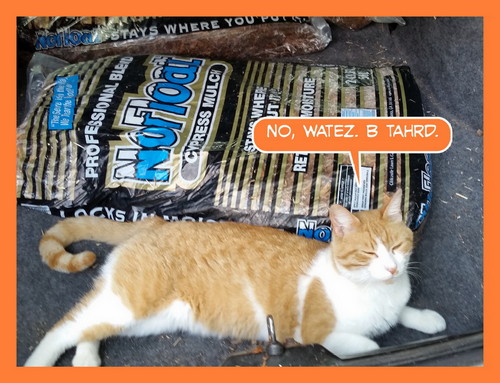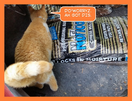 Sarcasm definitely intended. I got six more bags of mulch. That’s practically it. I even had help unloading it.
