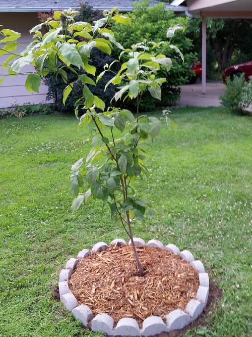 I got wibbly concrete to put around my little dogwood. I wanted the least digging possible, so I literally set it on the ground and painted the ground on the inside, then followed outside the line to allow for concrete. Had a hell of a time fitting it, but finally got it done without much more digging. Good thing, too, because it was hot and humid; sweat literally running into my eyes.