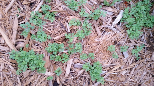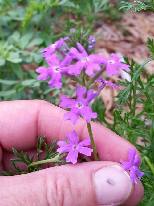 Verbena wasn’t on my list, but apparently, I did plant some because it’s in the concrete bed, and on two sides, which is how I’d have put in the seeds.
