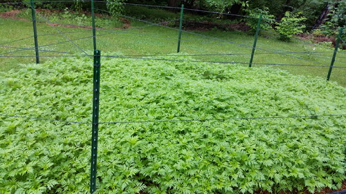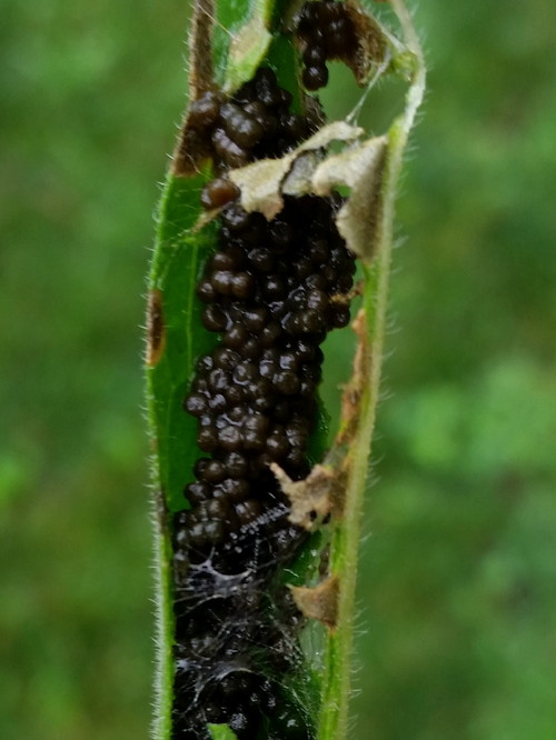 Something is making a big mess of my evening primrose. If it would stop raining (!!!), I’d try to figure out what. Brown spots on the leaves, lower leaves dying off, and a rolled up leaf full of…I dunno. Frass? Eggs? Probably the former.