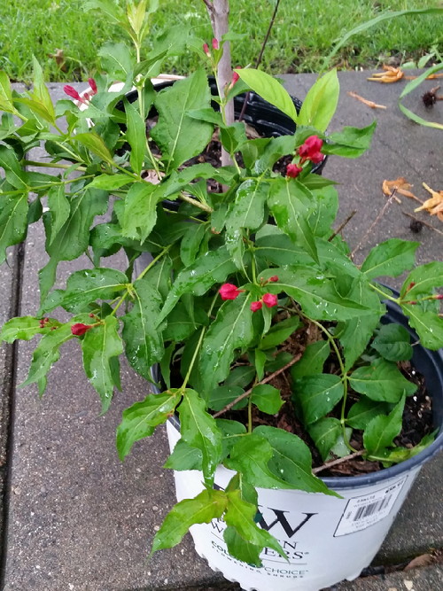 In stock potted plants were 40% off, so I got the last Sonic Bloom pink-that-is-red weigela. I might put it out front…dunno. the ditch lilies are blooming, but the iris and spiderwort are done.